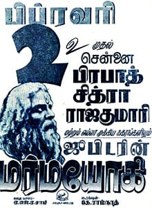Marmayogi (transl. The Mysterious Sage) is a 1951 Tamil-language swashbuckler film directed by K. Ramnoth and produced by M. Somasundaram. An adaptation of the novel Vengeance by Marie Corelli.The film was shot simultaneously in Hindi as Ek Tha Raja (transl. Once There Was A King). It stars M. G. Ramachandar, Anjali Devi and Madhuri Devi, with S. V. Sahasranamam, Serukalathur Sama (playing the title role), N. Seetharaman, S. A. Natarajan, M. N. Nambiar and M. Pandari Bai in supporting roles.W R SubbaRao was Cameraman.