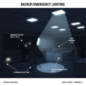 – Use of negative fill (black flags or curtains) absorbs stray light, deepening shadows for a true night effect .