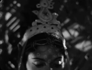 Ghatak frequently pushes black-and-white photography toward high-contrast, almost theatrical lighting.